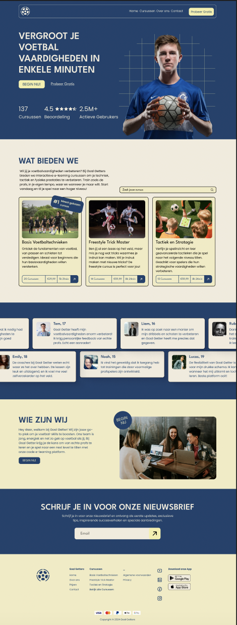 E-Learning is het aanleren van een vaardigheid via een online platform. Een digitale cursus is het product dat op deze platforms wordt verkocht. In dit project heb ik samen met een klasgenoot een salespagina ontworpen voor een digitale cursus. Voor dit project hebben wij een online voetbal cursus bedacht.